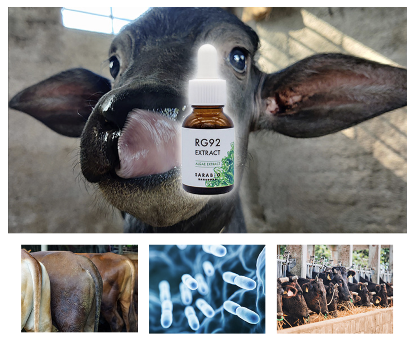 温藻RG92を水に混ぜ、生まれた翌日から 仔牛に飲ませたところ、 下痢の発生率が0% となるという 圧倒的な結果がもたらされました。