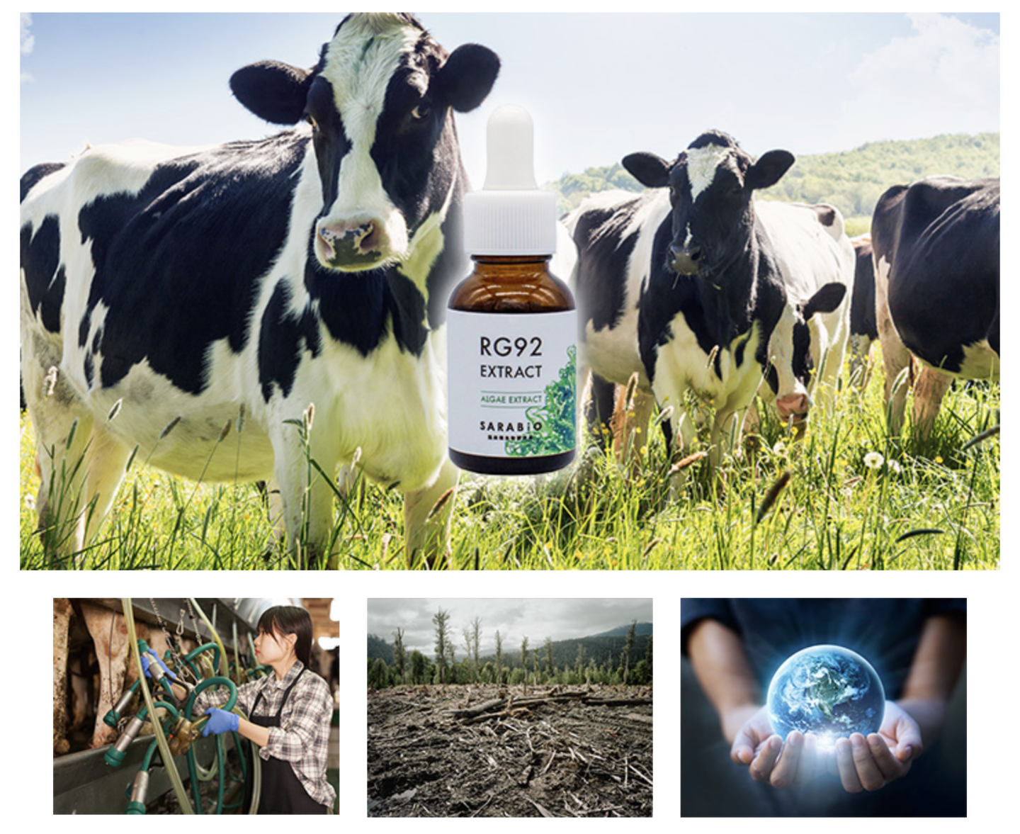 温藻RG92を投与することで 牛の腸内環境を改善、ガスの排出を大きく削減できるのではと期待が高まっています。